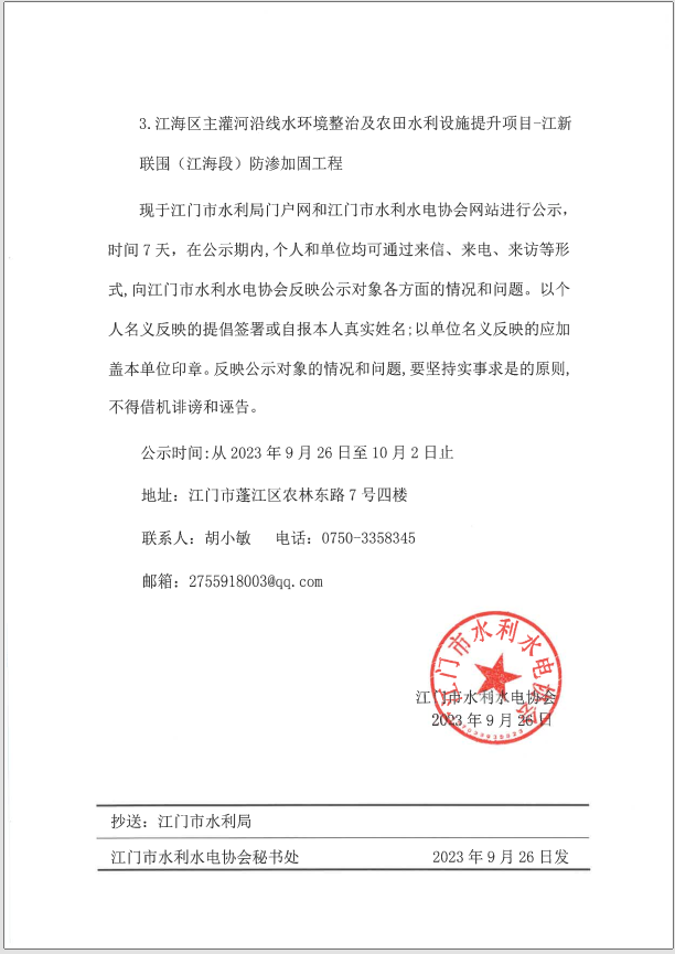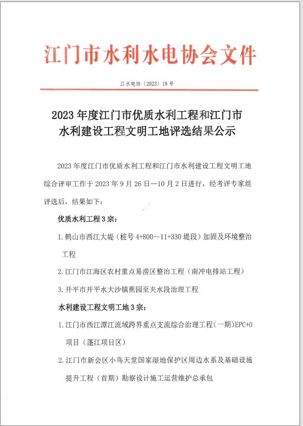 2023年度江门市优质水利工程和江门市水利建设工程文明工地评选结果公示_公示通告_江门市水利局