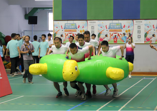 本次市土地储备中心代表队参赛的项目包括趣味项目、羽毛球项目等。在趣味运动项目中,各位健儿都充分发扬了积极进取、团结合作的精神,赛出了水平,也赛出了风格,赛出了干事创业的精气神,并在52支参赛队伍中获得了第17名的好成绩。