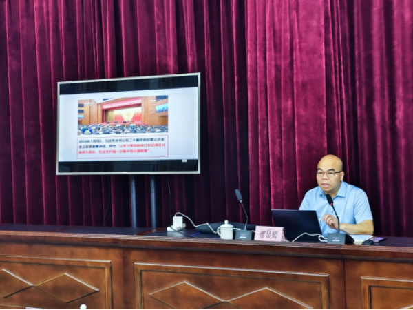为扎实开展党纪学习教育,进一步提升党员干部的纪律意识和党性修养,近日,市土地储备中心召开党纪学习教育专题宣讲会,邀请市委宣讲团成员、市委党校教授、党建教研室主任廖显辉教授作专题宣讲报告,全体党员、入党积极分子等参加了会议。