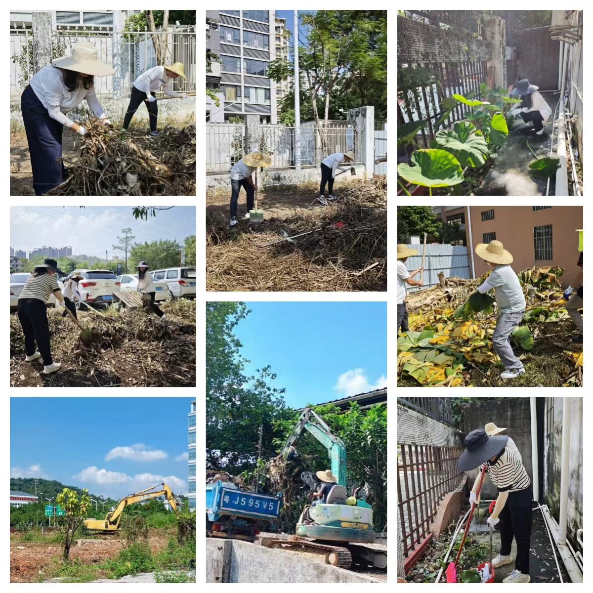 炎炎烈日下,在农林双朗小学西侧、发展小学西南侧及陈垣中学东侧等多处学校周边的政府储备土地上,呈现出一片热火朝天的劳动景象:挖掘机、铲车轰鸣作响,将成片杂草连根掘起;推土机把高低不平的土堆归拢压实,整理出一片片平整的地面。在大型器械难以“根治”的边角地块,市土地储备中心的同志们则上手投入细致清理:有的弯腰挥锄,用力铲除根深叶茂的杂草;有的仔细捡拾散落在草丛中的塑料瓶、包装袋等各类积存垃圾;有的将清理出的杂草、垃圾集中归拢、装车清运。大家充分发扬不怕脏、不怕苦、不怕累的实干精神,尽管汗水浸透衣背、骄阳炙烤肌肤,依然充满斗志,干劲十足。