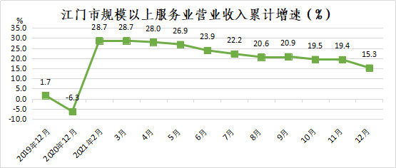2021年,全市规模以上服务业营业收入实现228.14亿元,同比增长15.3%,两年平均增长3.9%。