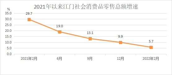1-2月,全市实现社会消费品零售总额206.98亿元,同比增长5.7%,增速比2021年两年平均增速加快2.8个百分点。