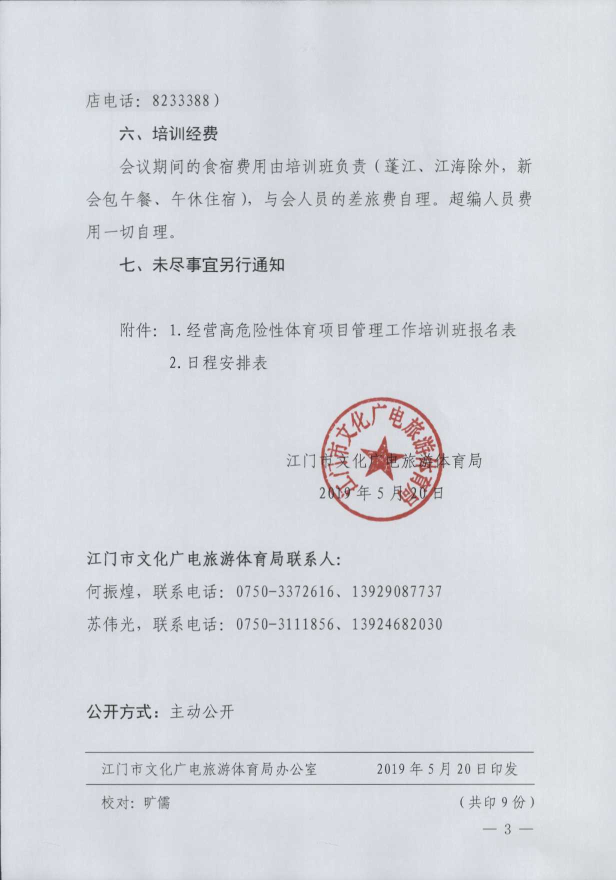 关于举办广东省经营高危险性体育项目管理工作培训班暨江门市高危险性体育项目培训通知_法治宣传_江门市文化广电旅游体育局
