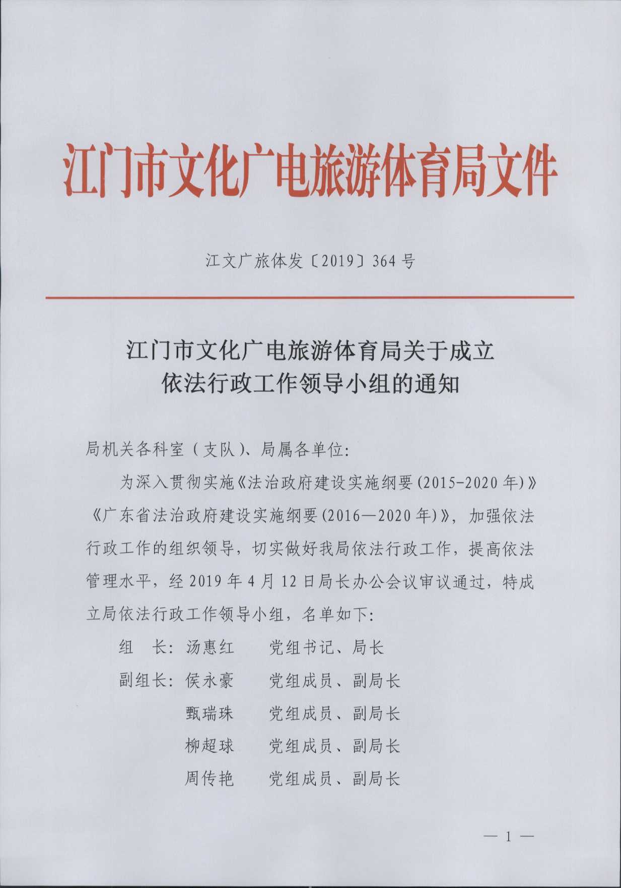 江门市文化广电旅游体育局关于成立依法行政工作领导小组的通知_法治宣传_江门市文化广电旅游体育局
