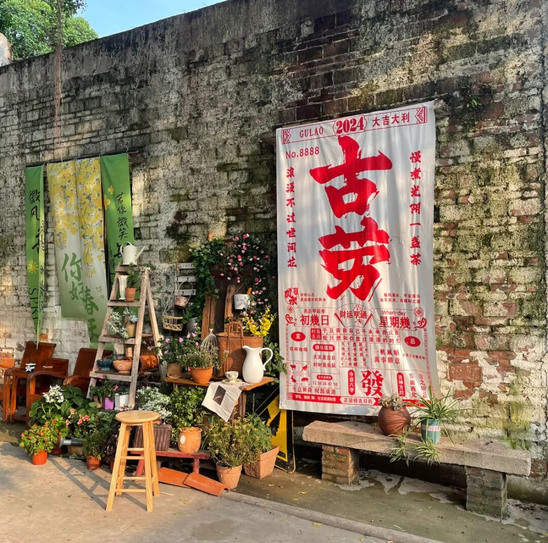 墙上还画着各种鹤山文化元素,