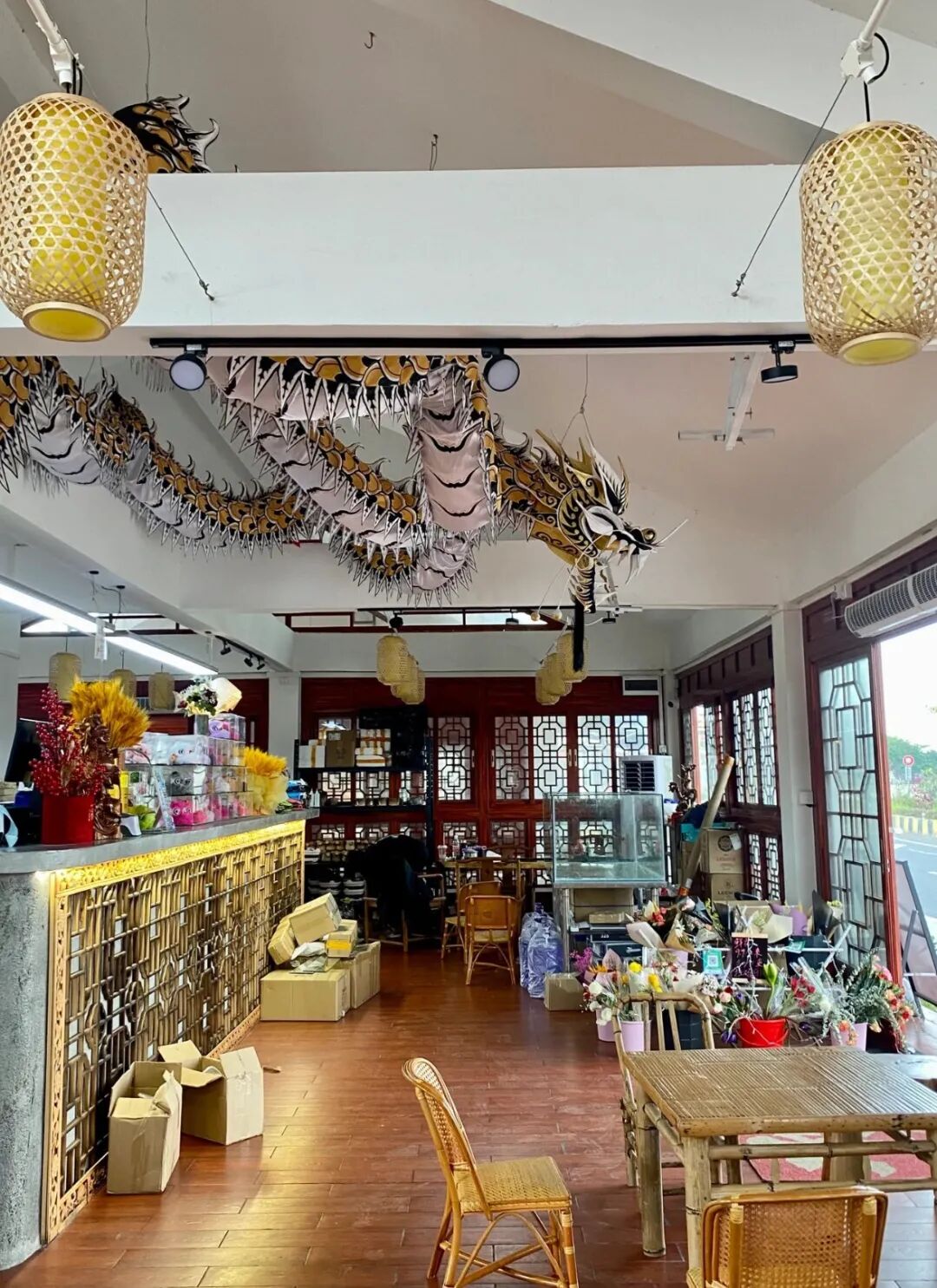 一抬头便被一条盘旋在天花的中国龙所震撼,