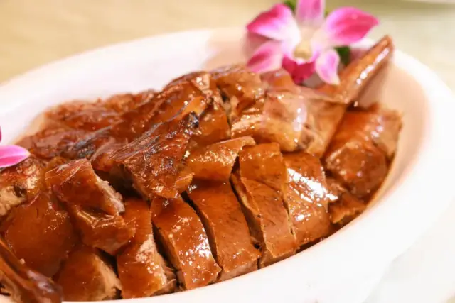 而在新会区古井镇,还有一张饮食名片更是名扬至港澳甚至海外,那便是古井烧鹅。古井烧鹅选用广东四大名鹅之一的开平马冈鹅,用宋朝延续下来的宫廷烧鹅做法,使得烧鹅肉嫩爽口、鲜香多汁、齿颊留香。
