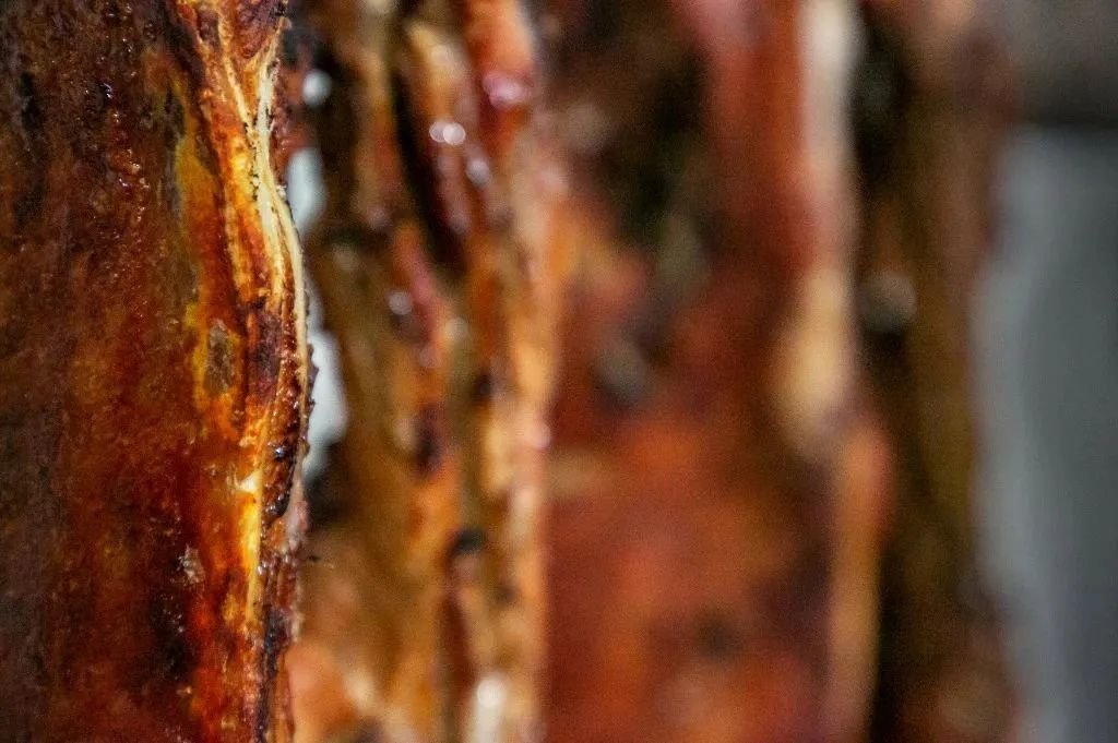 出炉的烧鹅色泽鲜艳,