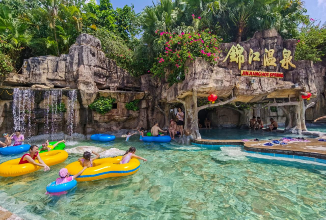 锦江温泉拥有客房400多间,酒店配套糅合动感、潮流、时尚、健康、好玩,在全国首创的温泉冲浪& 温泉漂流等十大动感系列产品,成为全国首家以动感温泉为主题的国家AAAA级旅游景区。