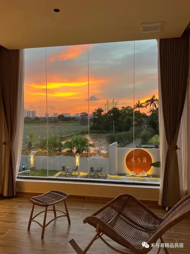 民宿设有餐饮、住宿、音乐、茶室及休闲娱乐项目,晨迎日出、晚观夕阳、夜览星空的绝佳观赏地。在禾与荷民宿,可以倾听雨滴在麦穗上弹奏,眼见雨雾在稻田中行走,也可以亲自见识春种秋收,深入体会农耕文化。