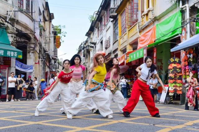 这场30分钟的“游街式”快闪,打破了传统舞台的边界,观众不再是静默的看客,而是沉浸其中的同行者。舞者近在咫尺的爆发力、老街建筑天然的纵深感,共同构成独一无二的沉浸式艺术场域,让街舞的激情与墟街的厚重碰撞出耀眼的火花。