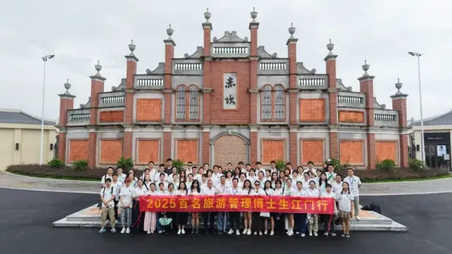 当日,来自中山大学、厦门大学、香港理工大学、香港中文大学、澳门大学、马来西亚北方大学、韩国全南国立大学等海内外知名高校的近百名博士生和青年教师考察调研了中国侨都华侨华人博物馆、先锋书店、自力村碉楼群和赤坎华侨古镇,深入了解江门推进“百县千镇万村高质量发展工程”和农文旅融合发展的最新成果,并为江门文旅高质量发展建言献策。