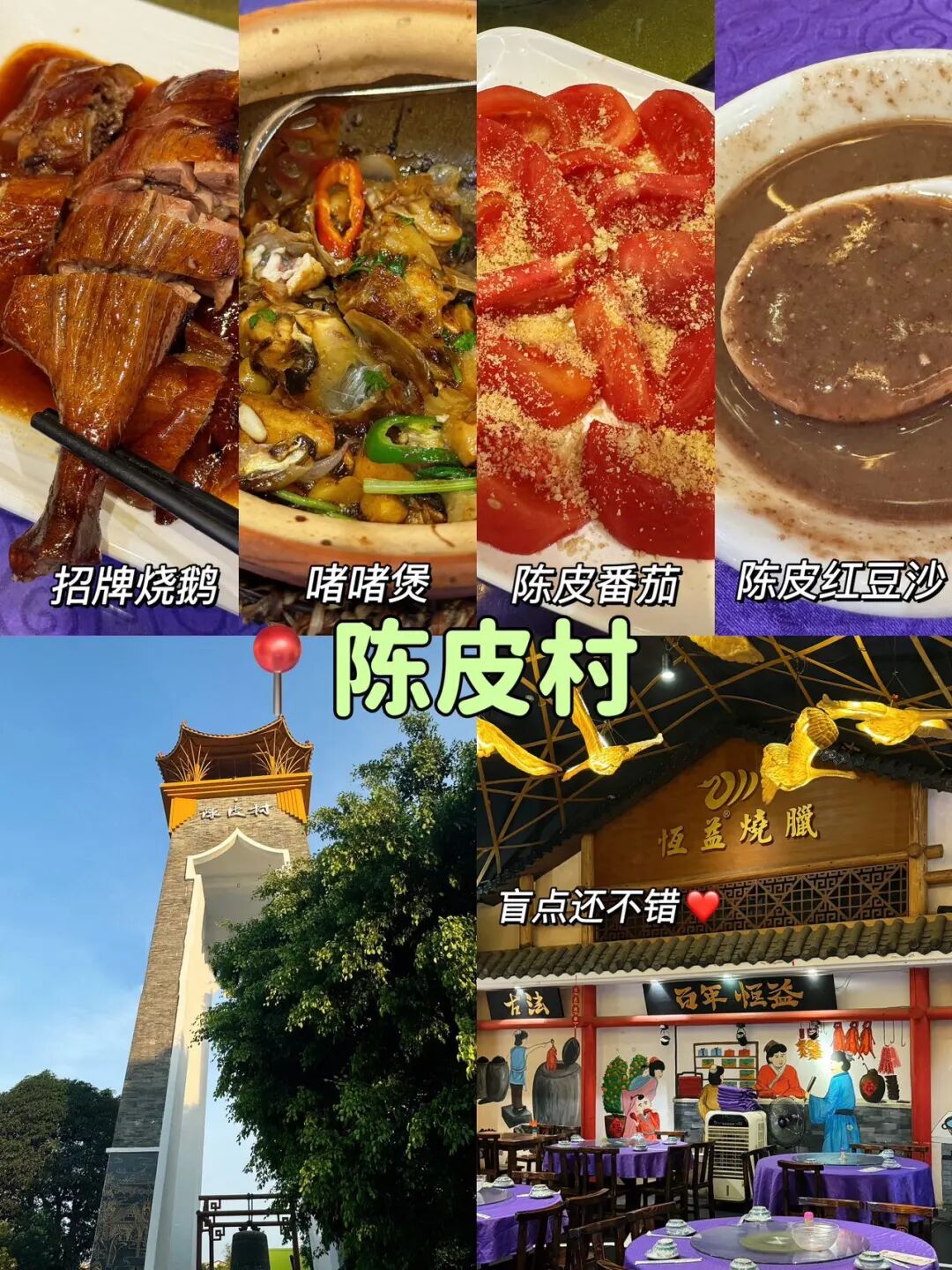 在这里,当然少不了品尝地道陈皮宴!随便走进一家餐馆,除了烧鹅,一定也有其他陈皮辅佐的菜, 比如陈皮红豆沙、陈皮骨、陈皮鸭、陈皮蒸鱼,陈皮番茄……