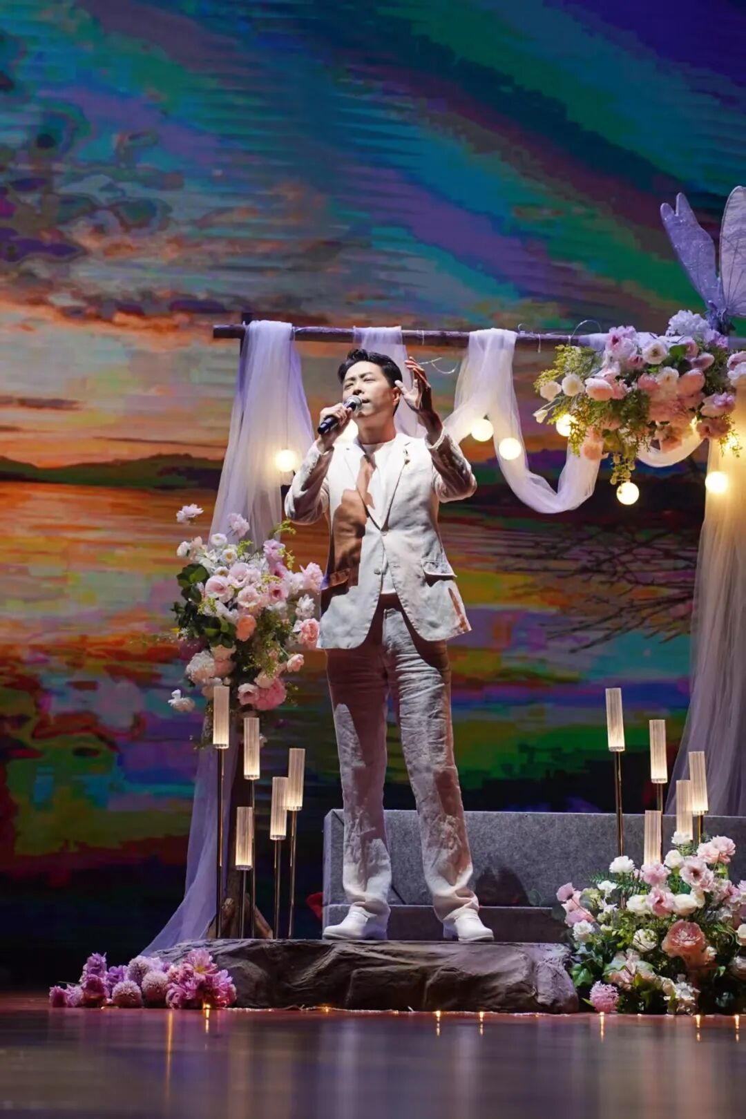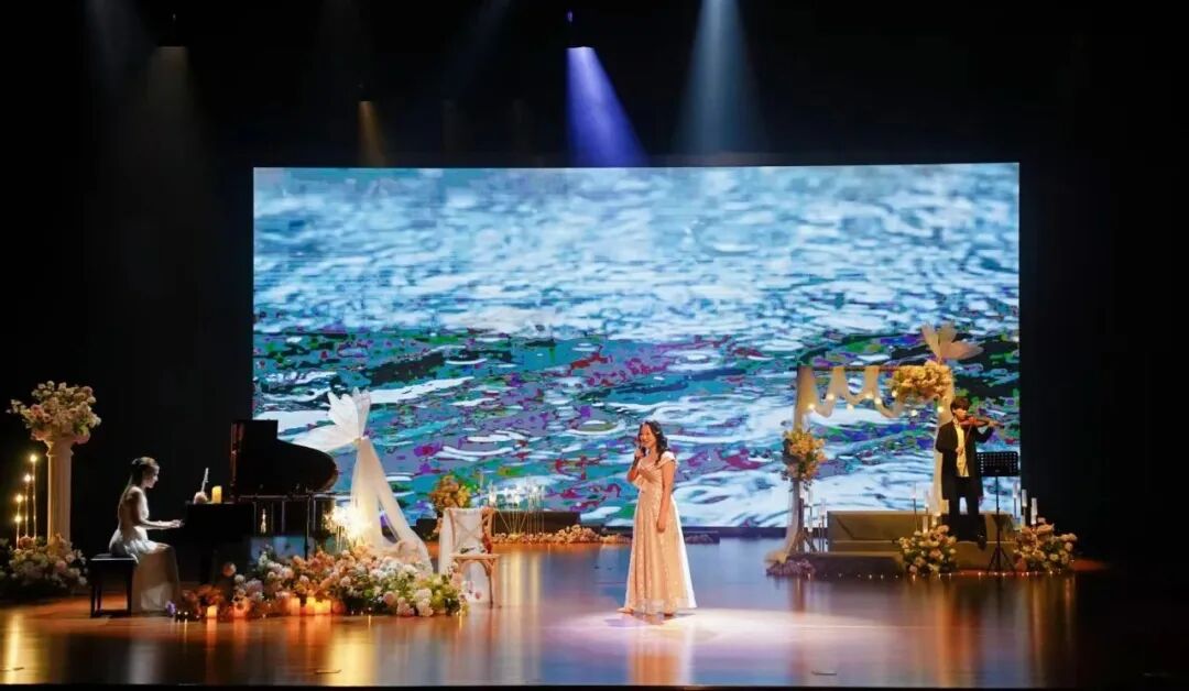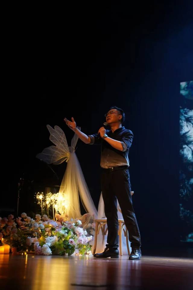 “取消主持人,是为了让观众获得连贯的观看体验。当观众步入剧场,舞台与观众席便融为一体,共同构成这场爱情叙事的一部分。”晚会导演、江门市戏剧家协会理事徐璐介绍,音乐会精选了大量现代爱情诗歌,配合唯美浪漫的舞台设计,让观众自然而然地沉浸在爱情的氛围中。