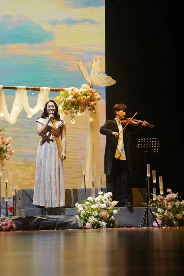 整场音乐会以“相遇相识”“相知相恋”“相伴相牵”三个篇章递进。悠扬的器乐协奏中,《世界赠予我的》缓缓拉开序幕,随后《雨巷》的朦胧情思、《偶然》的刹那心动、《月半小夜曲》的静谧守望、《贝加尔湖畔》的悠远意境、《我喜欢你是寂静的》的无言默契、《爱情不会老》的岁月沉淀相继呈现。其中,全场互动朗诵《青春恋歌》将气氛推向高潮,表演者与观众齐声诵读,让个体的爱恋感悟升华为集体的情感共鸣。