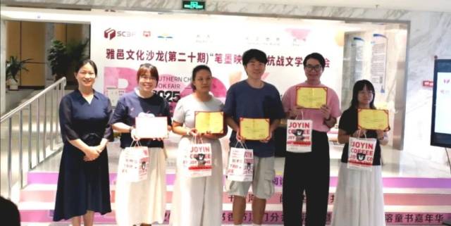 温暖而振奋的时刻——2025年度江门市图书馆“借阅之星”与“分享之星”颁奖仪式环节,臻盈咖啡总经理陈晓敏为八位热爱阅读和积极参与阅读活动的读者颁发荣誉证书和礼品。江门市图书馆副馆长骆红琴为品牌建设的合作伙伴——圆桌部落读书会的五位优秀分享者颁奖,感谢他们一起努力在阅读推广中持久耕耘,在书香江门建设中作出贡献。