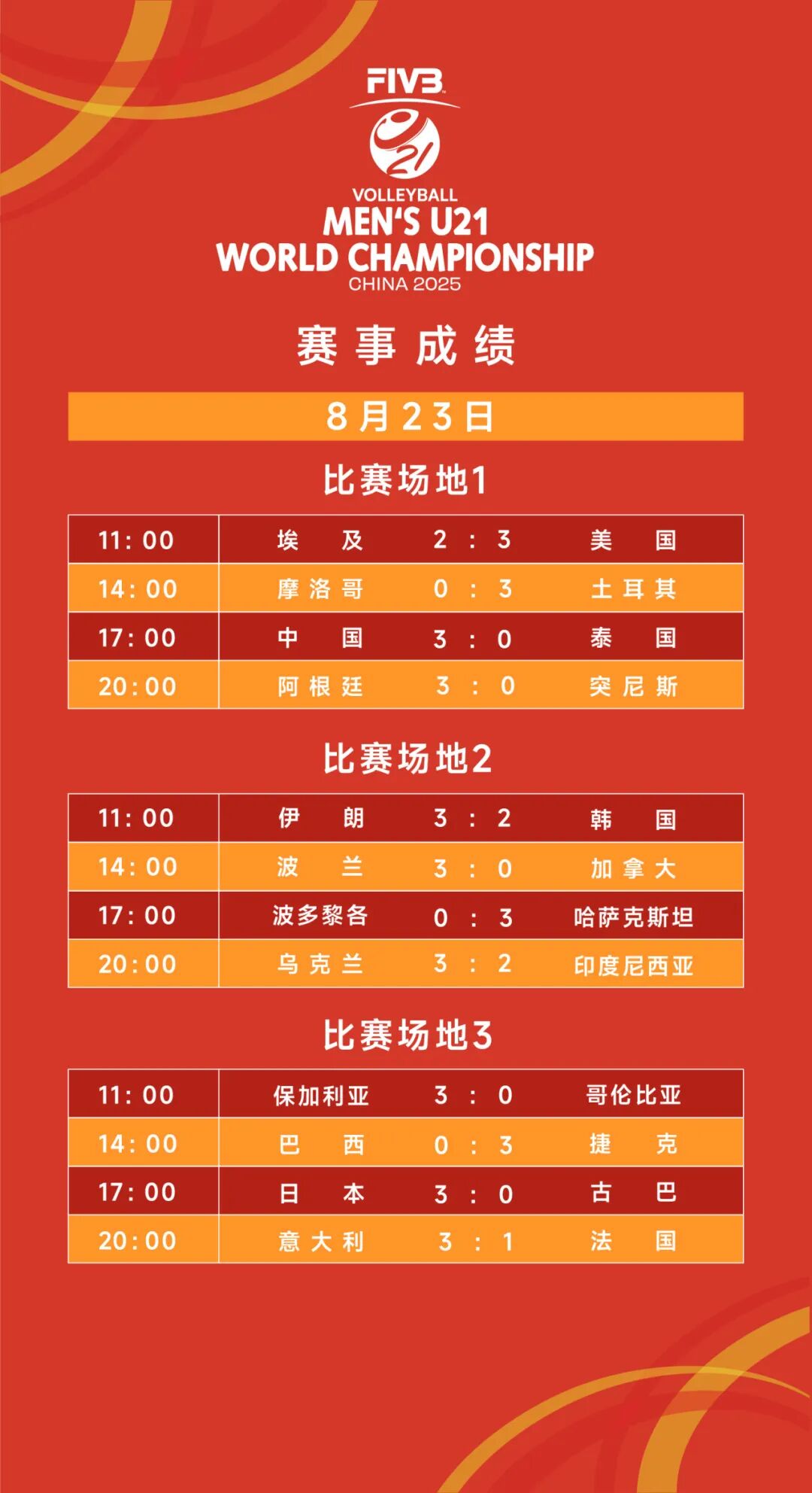 8月23日比赛赛果