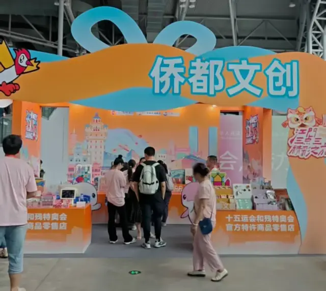 在赛事现场,设置了侨都文创、江门优品、蓬江优品、十五运文创等特色摊位,集中呈现江门非遗及手工艺品、特色文创纪念品等百余款本地优质产品,吸引众多国际运动员和游客前来参观、选购,江门特色冰箱贴、徽章、十五运文创等商品备受欢迎,销售额持续攀升,让侨乡特色产品成为传递江门文化的“流动名片”。
