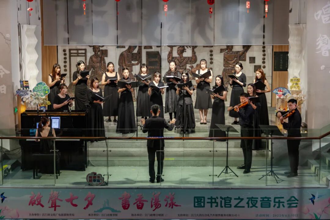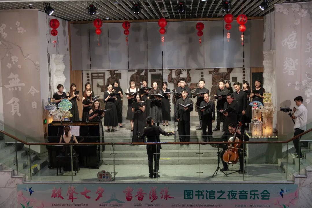 8月30日晚,由江门市文化广电旅游体育局主办,江门市图书馆承办,江门啟聲合唱团协办的“啟聲七夕 书香荡漾”图书馆之夜音乐会在图书馆“无负今日”城市书房舞台精彩上演。