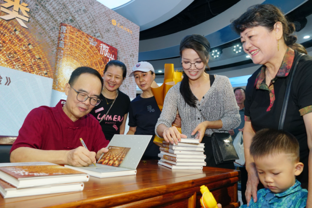 △在活动现场,尹继红为读者签名。江门日报记者 郭永乐 摄