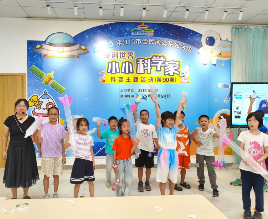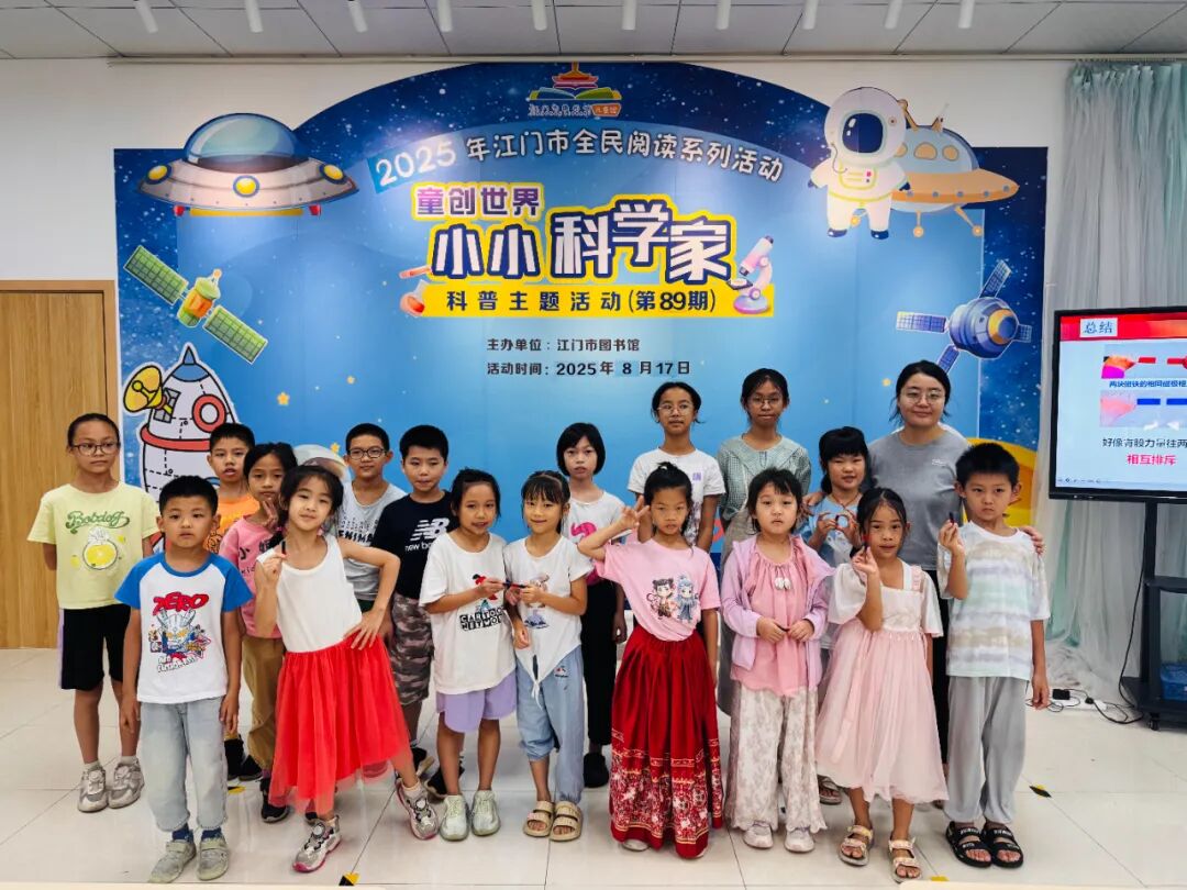 江门市图书馆“童创世界——小小科学家”第87-91期活动于8月趣味开展,围绕物理现象、化学应用与科技原理,带领孩子们在亲手操作、实验探索中揭开科学的神秘面纱,度过一段充满好奇与收获的科学时光。