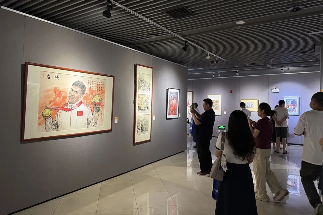开幕式当天,展厅内人流如织。来自蓬江区的教师李女士在一幅名为《轮椅上的晴空击球》的油画前驻足良久。画作定格了轮椅运动员挥拍扣杀的刹那——她身体后仰,手臂高扬,蓄势待发,奋力拼搏的姿态迸发出强大的生命力。“完全被震撼了,”李女士说道,“作者以鲜明的红色基调象征蓬勃的生命力,红白对比的构图将视线聚焦于主角。这些作品让人感受到的并非残缺,而是生命无限的可能。”