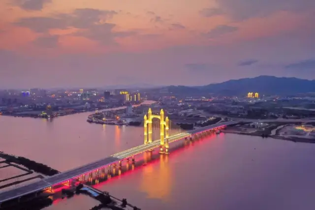 影片后期调色“做旧处理”,把20年前的社会氛围感一并带出,这就是位于开平的金山大桥。