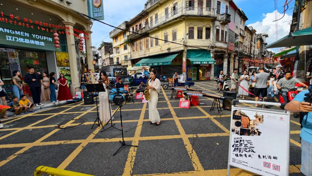 “墟街有戏”国庆系列活动的成功举办,是江门市文化馆着力打造“江门三点三精彩之旅·墟街有戏”文旅品牌的重要创新举措。活动通过将静态的历史建筑与动态的艺术表演完美融合,不仅生动诠释了我市文旅融合发展的新模式,有效促进了国庆期间江门文旅市场的繁荣兴旺,更为广大市民游客提供了丰富多彩的节假日文化体验,成为推动地方文旅产业高质量发展的成功实践。