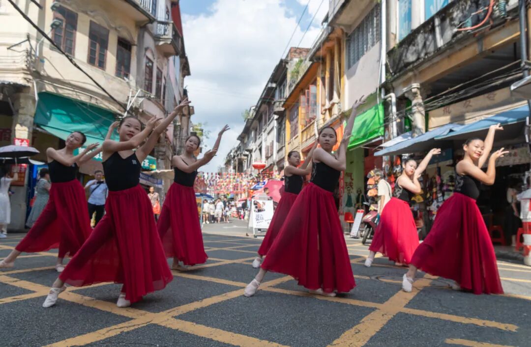 国庆期间,由江门市文化广电旅游体育局指导、江门市文化馆主办的“江门三点三精彩之旅·墟街有戏”系列活动在长堤历史文化街区成功举办。3场不同主题的文化展演以独特方式展现了侨乡文化的魅力,在庆祝中华人民共和国成立76周年的喜庆时刻,用艺术的语汇表达了对祖国的深情祝福,成为市民和游客假期文化生活的精彩缩影。