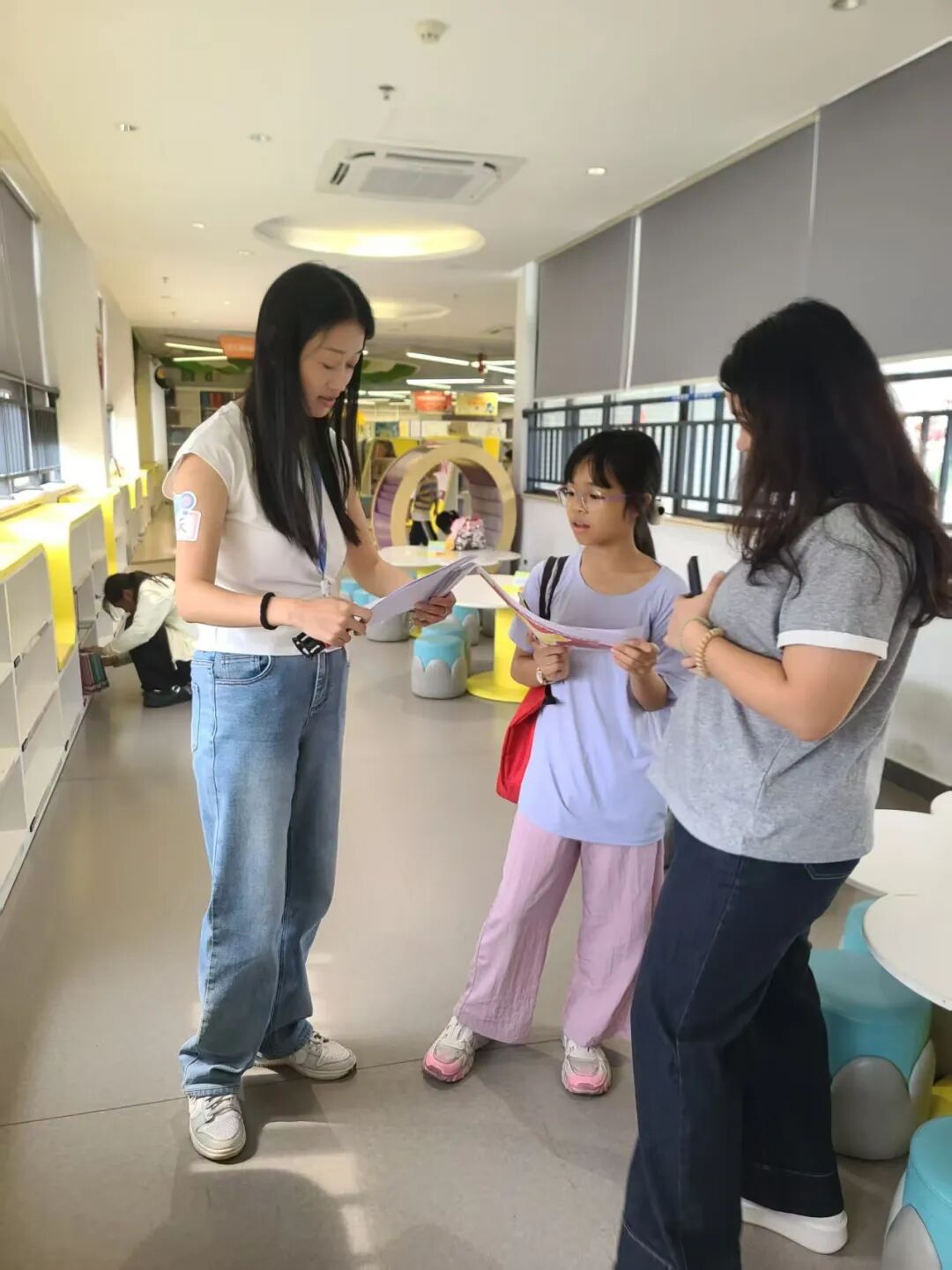 闯完所有关卡后,小读者们快步奔向“兑奖处”,排队时还会互相展示自己的答题成果。听到“合格啦”的瞬间,不少孩子会欢呼一声,拿到奖品后兴奋地跟同伴分享“奖品是地图耶!”。