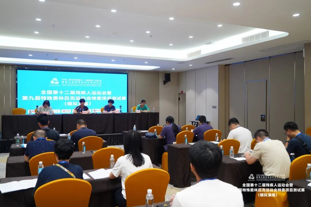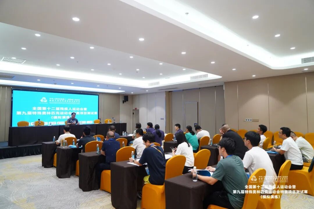 会议围绕本次残特奥项目测试赛的组织与运行,重点就赛前检录、赛程安排、安全保障(医疗、交通等)、赛事协同机制及突发情况应对等方面提出明确要求。至此,赛前各项筹备工作已全部就绪。