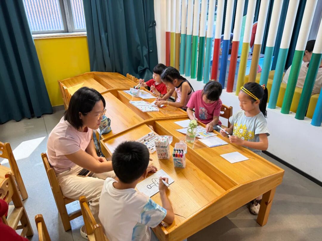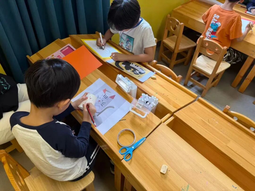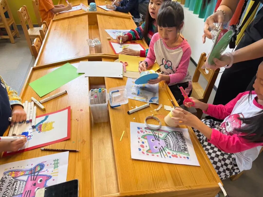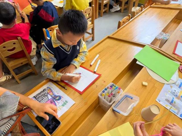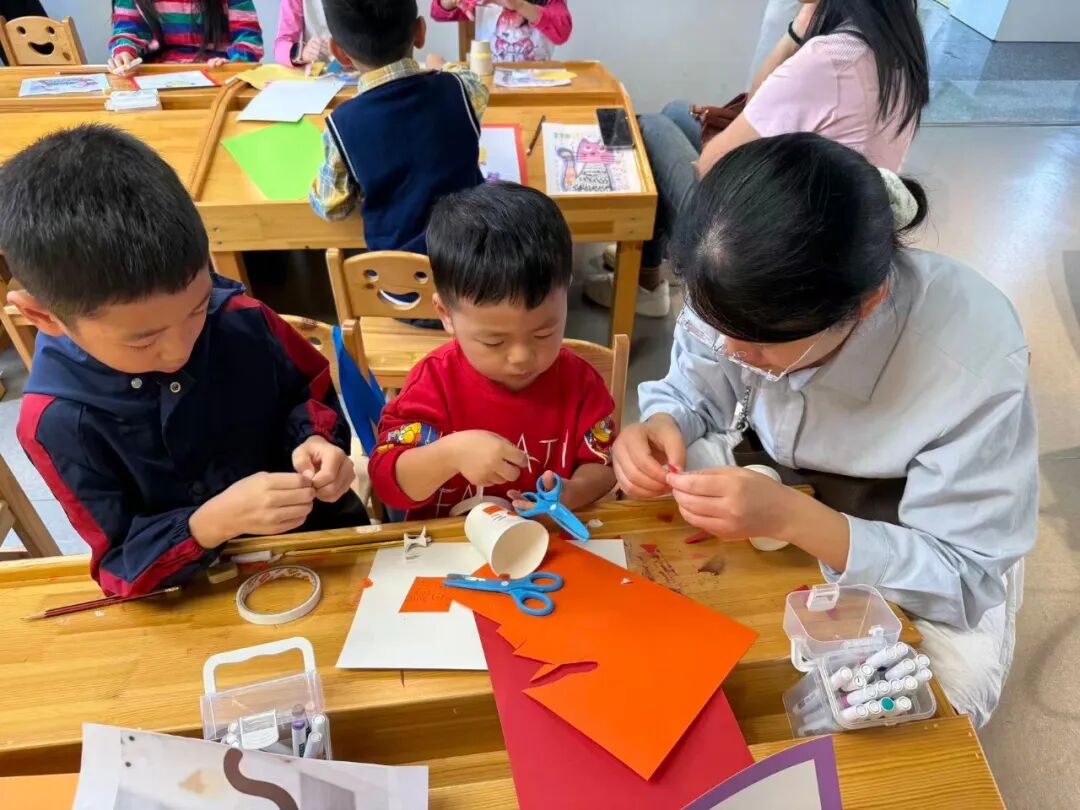 现场充满了创作的乐趣,家长们耐心地协助孩子裁剪、粘贴,偶尔指导孩子如何握笔写字,孩子们则叽叽喳喳地分享着自己的想法,亲子间的互动温馨又有爱。当孩子们举起自己完成的手绘信展示时,每一张作品都充满了童真与创意,也藏着孩子们对朋友最纯粹的温暖心意。