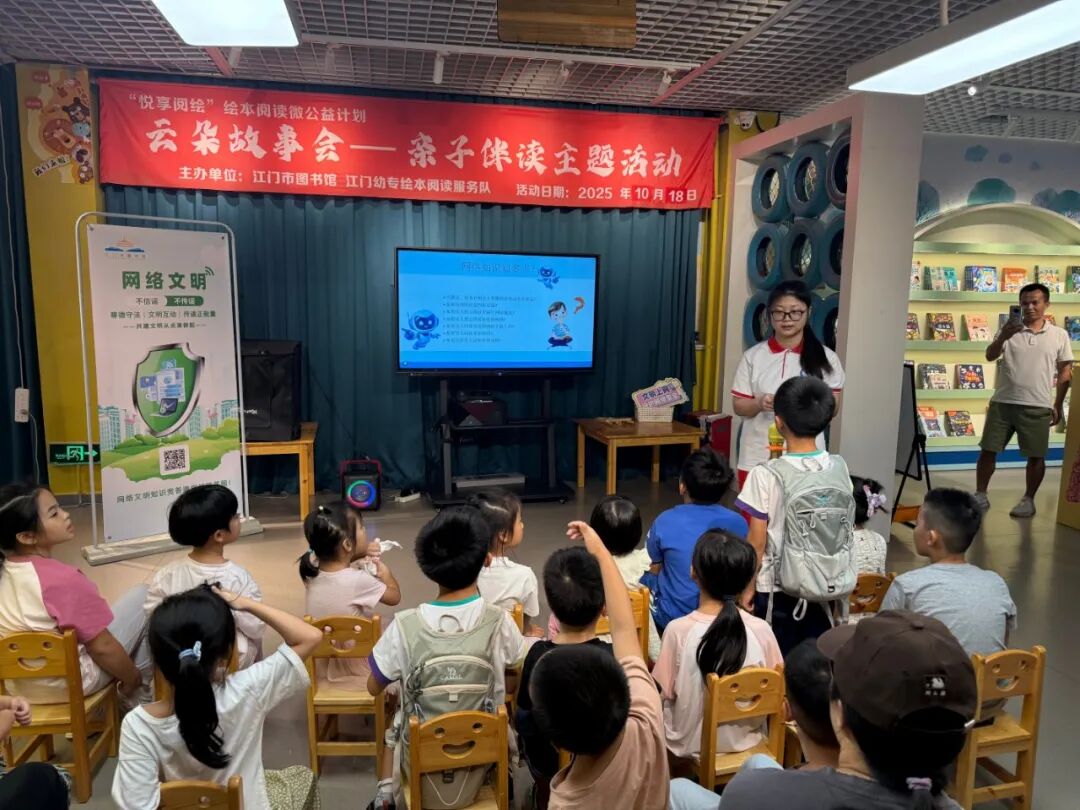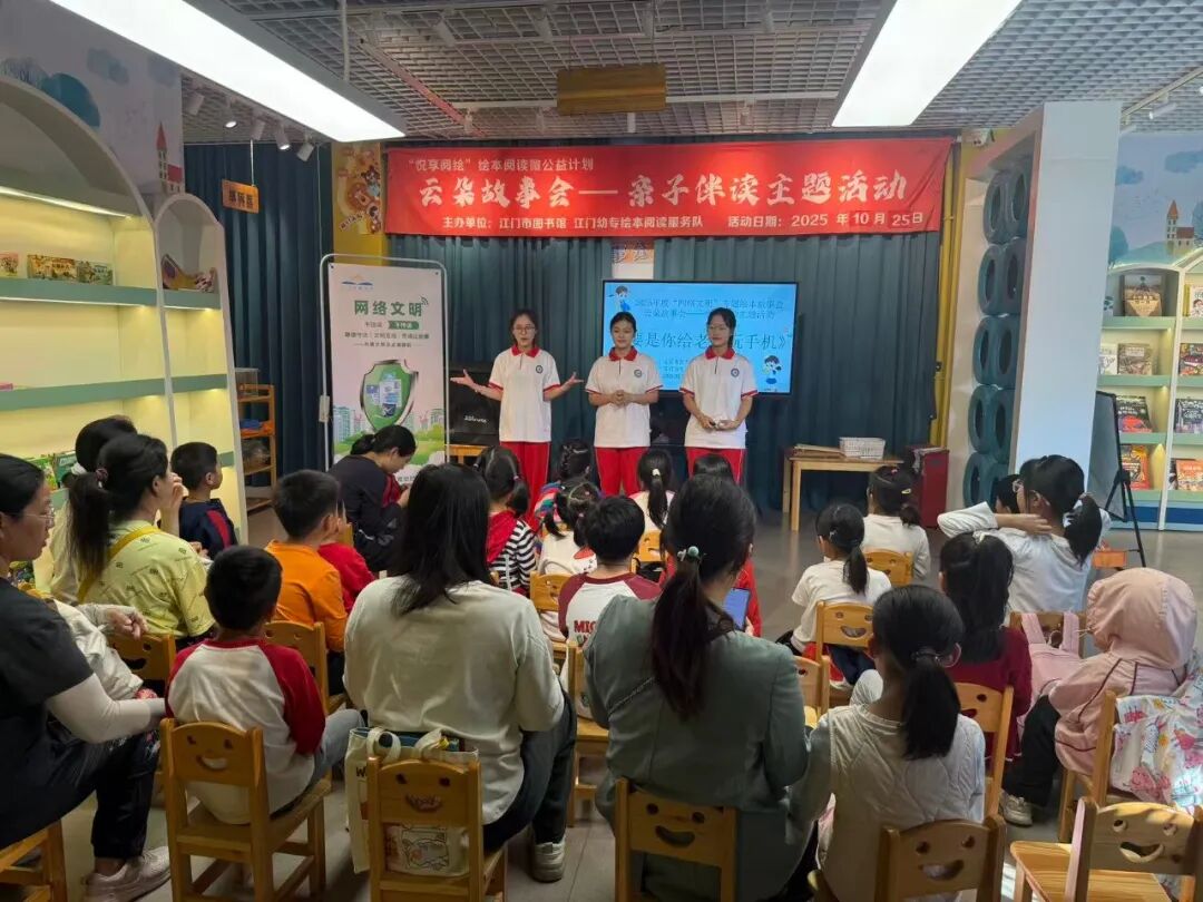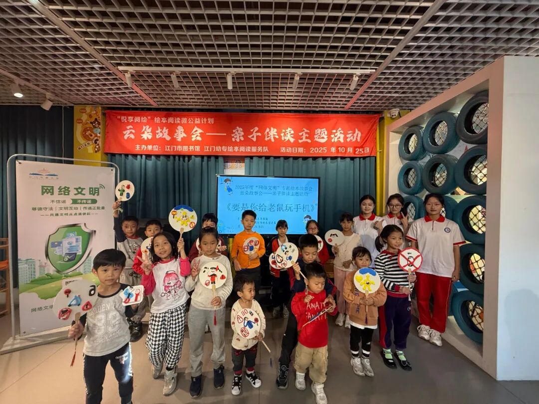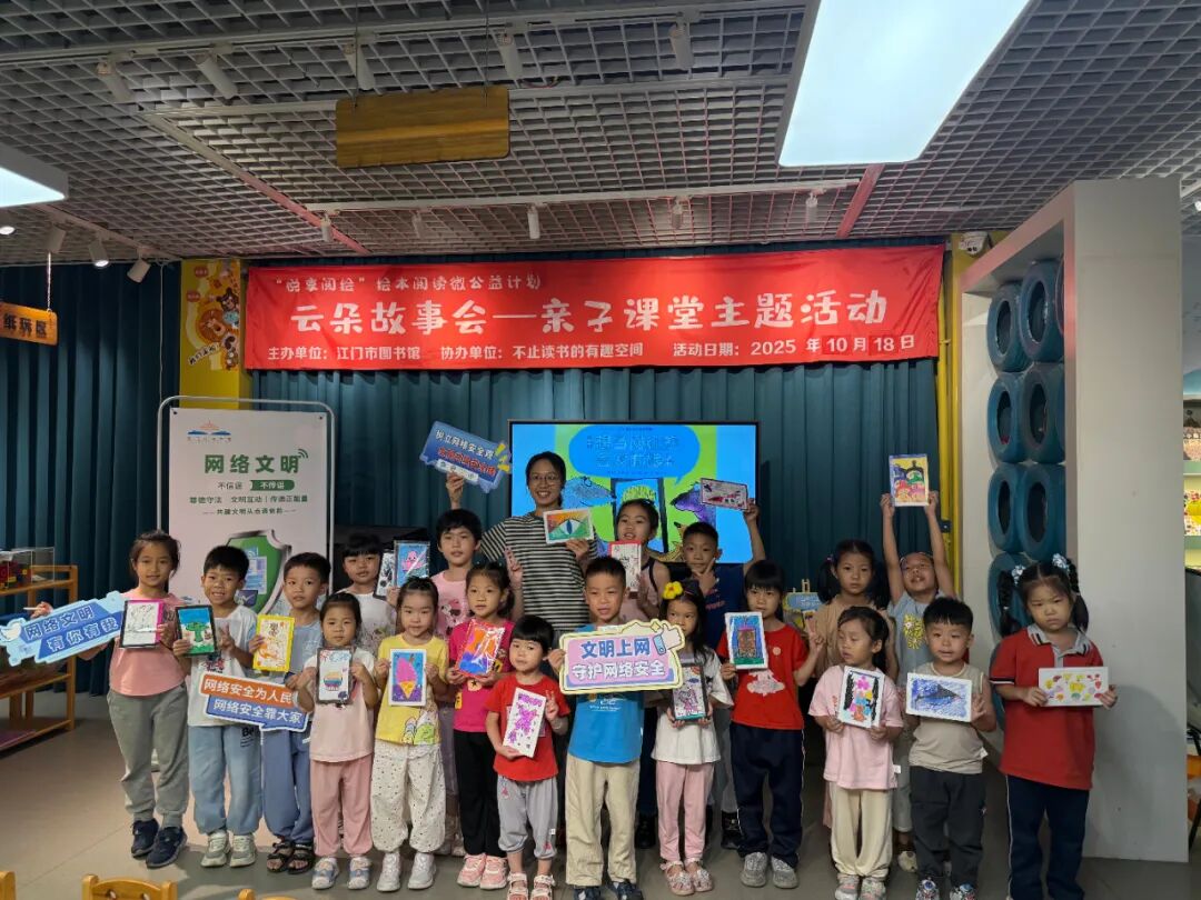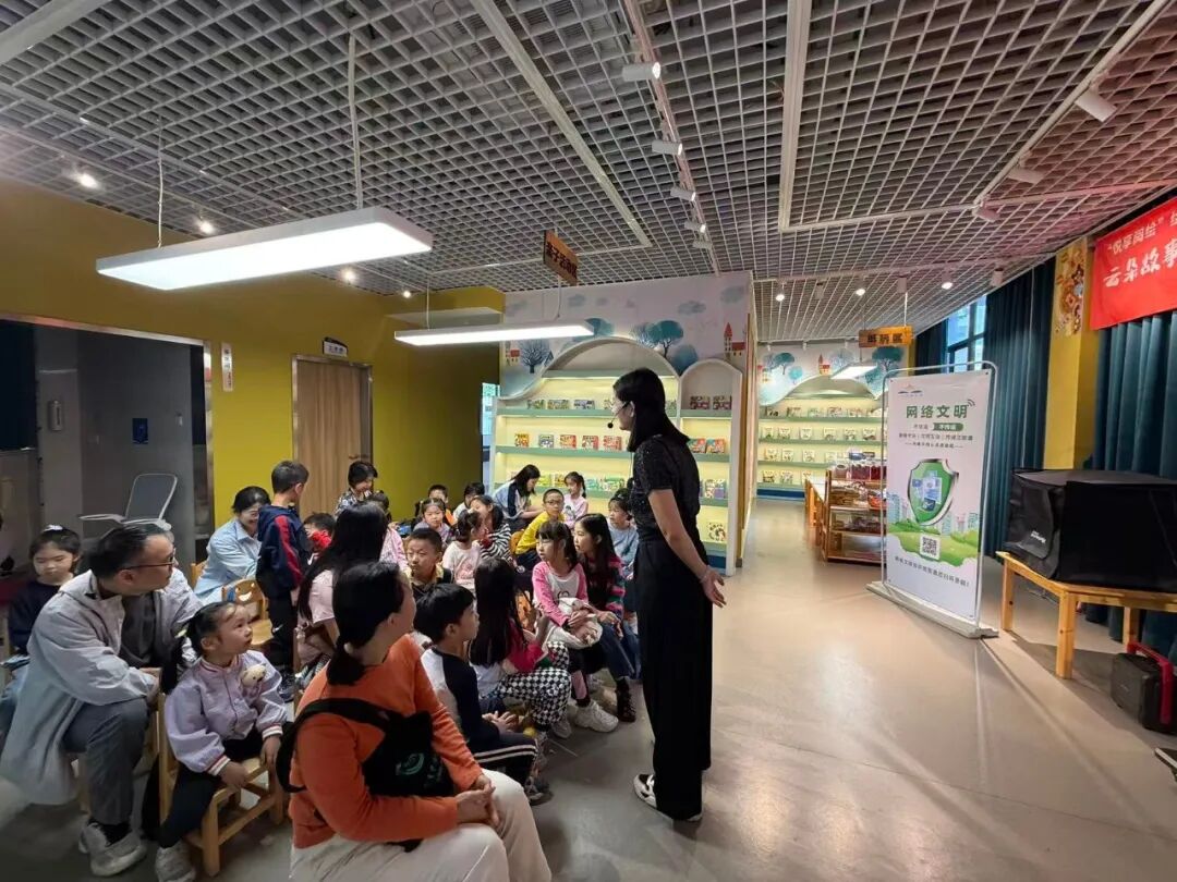 10 月 25 日下午,秋阳正好,微风不燥,第 44 期 “云朵故事会 —— 亲子伴读” 在温馨的氛围中如期而至。本期活动以《要是你给老鼠玩手机》为故事核心,紧扣 “网络文明” 主题,通过 “我做你猜” 热身游戏、绘本故事分享、网络知识科普问答及 “网络安全‘守护盾’” 手工制作,让亲子家庭在趣味互动中思考手机与网络的正确打开方式,度过一段充满意义的亲子时光。