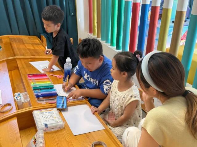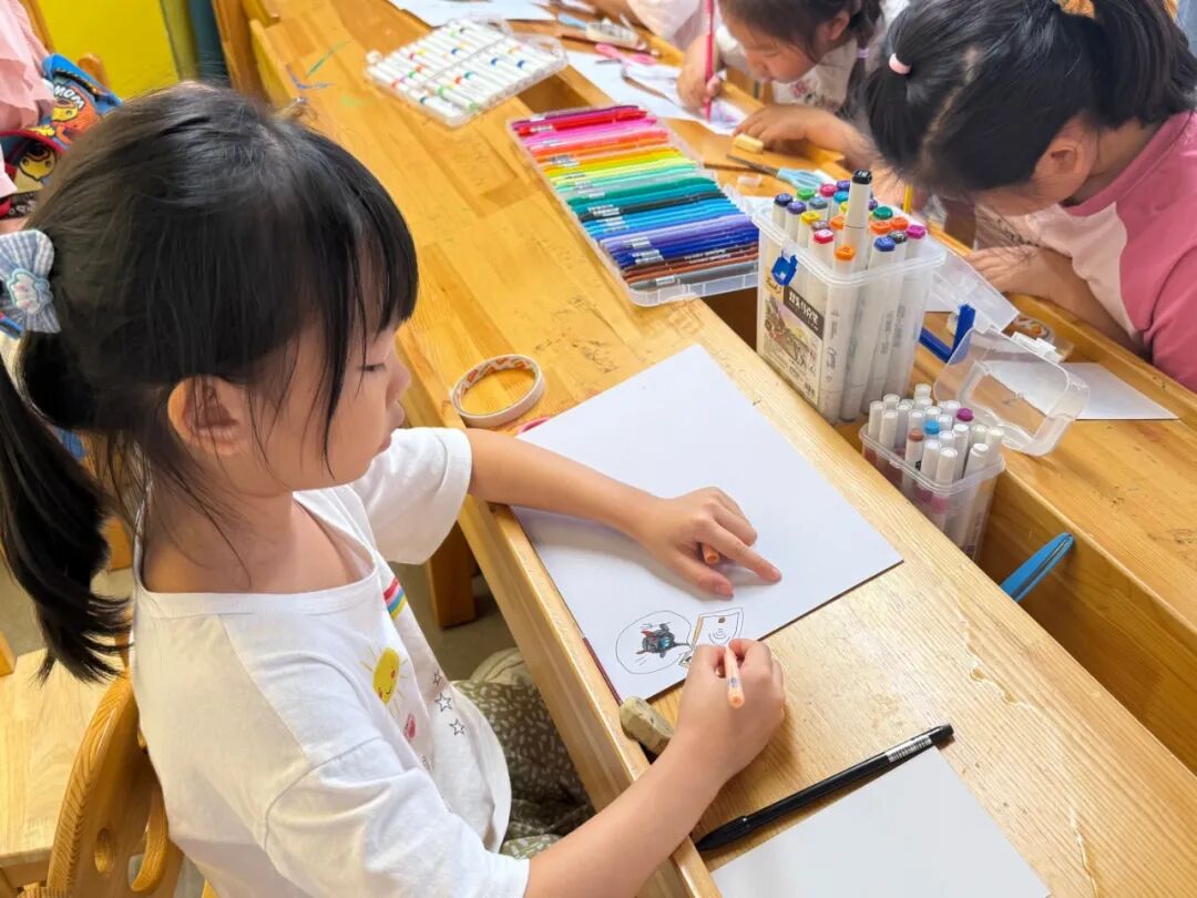 活动的最后一站是手工制作 ——“给好朋友的手绘信”。工作人员为每个家庭准备了彩笔、卡纸、剪刀和双面胶,孩子们立刻化身 “小小设计师”,迫不及待地开始创作。有的孩子用鲜艳的彩笔在卡纸上画出彩虹和太阳;有的孩子则剪出手拉手的小人,粘贴在信纸上,寓意着和好朋友的珍贵友谊;还有的孩子在家长的帮助下,折出漂亮的信封,将满满的心意装在里面。