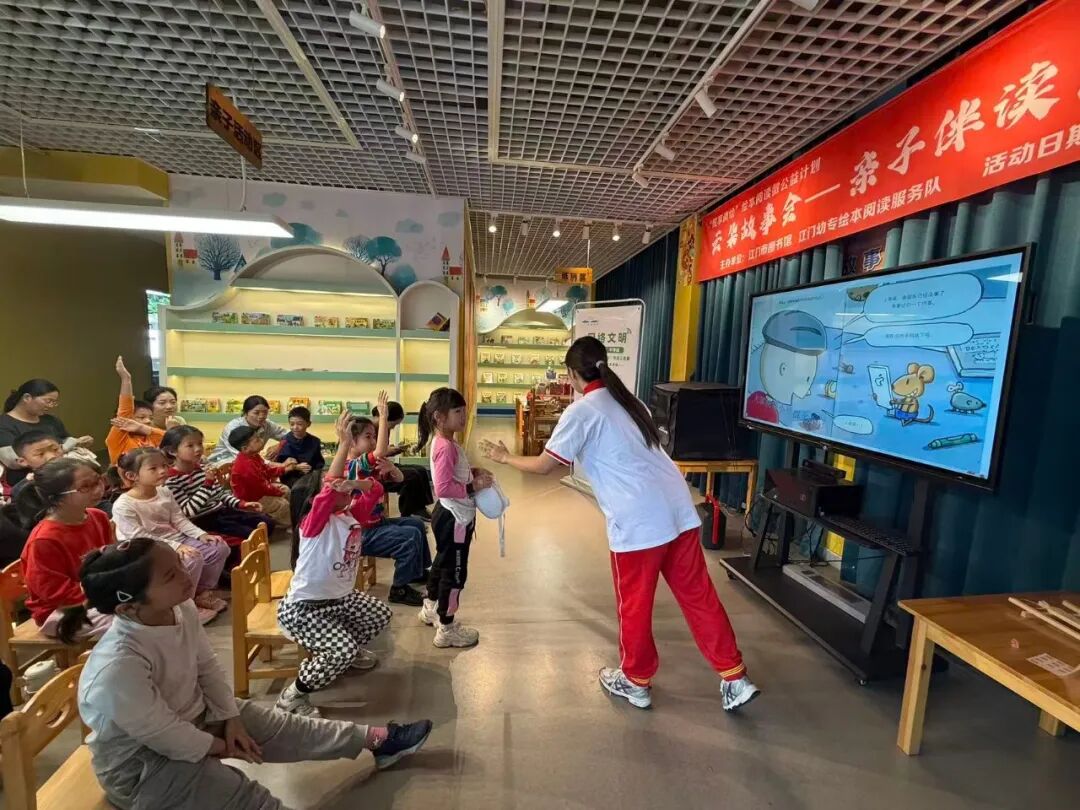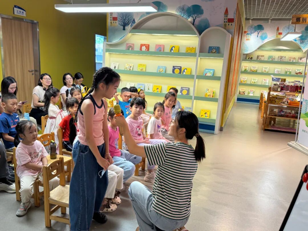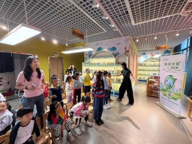 活动流程环环相扣,每一分钟都充满惊喜。在绘本精读环节中,文化志愿者老师生动演绎故事,讲到关键处,文化志愿者老师特意停下提问:“小朋友们,金发姑娘把闯祸的事情发到网上,对不对呀?”孩子们纷纷举手:“不对!因为她偷了别人的东西,这是坏事情,不能让别人看到!”