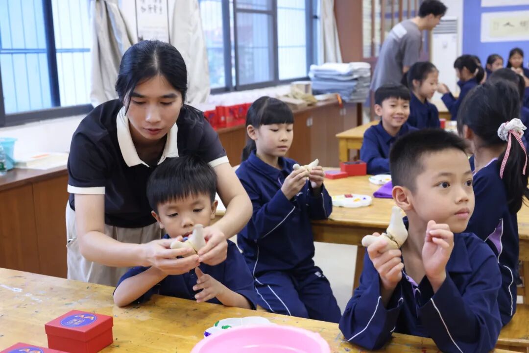 随后,在冯老师的指导下,大家进行镇濠泥鸡的制作彩绘实操。通过本次活动,碧桂园的师生深入了解镇濠泥鸡制作技艺这项传统文化的知识和内涵,体验传统文化的独特魅力。