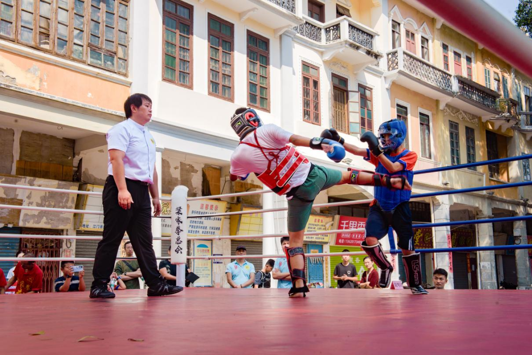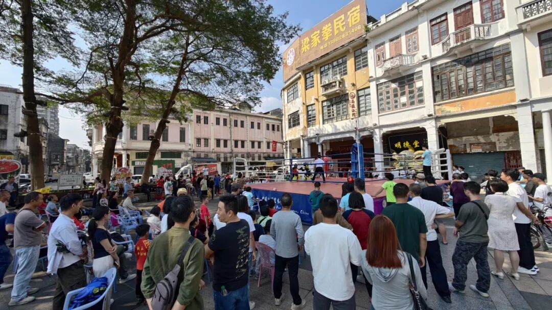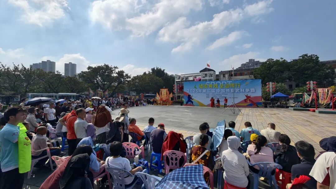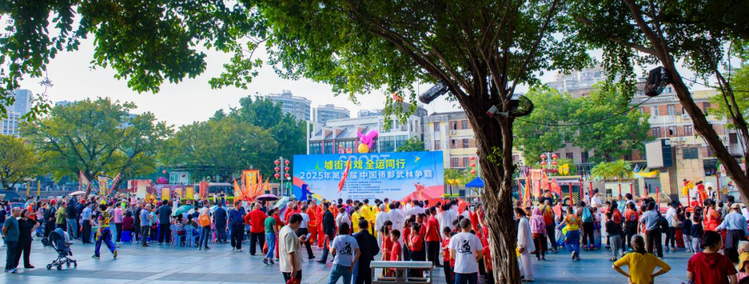 11月16日上午,江门长堤历史文化街区青年广场上锣鼓喧天、旌旗招展,由江门市文化广电旅游体育局、五邑大学体育部指导,江门市文化馆、江门市武术协会联合主办的“墟街有戏 全运同行 ——2025年第二届中国侨都武林争霸”在此精彩上演。本次活动涵盖武术、搏击、龙狮等多个竞赛项目,总参与人数超过270人,齐聚侨乡武林精英,以武会友,以赛传情,在百年骑楼的见证下,奏响了一曲传统与现代交织、体育与文化共鸣的雄浑乐章。