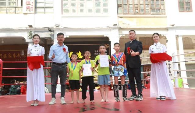 “青少年搏击争霸”环节同样精彩纷呈。本次设置的短兵和搏击项目是国家体育总局武术管理中心重点推广的双人对抗项目,是中国武术持械对抗与徒手对抗的两种重要表现形式,也是广受欢迎的武术进校园项目。来自5个代表队的22名青少年搏击选手,在11个级别的比赛中奋勇角逐、激战争霸。擂台上,少年武者们拳风凌厉,腿法迅猛,每一次精准的出拳都引来观众阵阵惊呼,既展现了传统武术的沉稳厚重,又彰显出新时代青少年的蓬勃朝气。整个青年广场沉浸在紧张刺激又热血沸腾的氛围中,掌声、喝彩声、助威声此起彼伏,汇成一曲动人的武术交响乐。经过激烈角逐,活动为各级别的胜出者进行颁奖,这不仅是对青少年武者拼搏精神的肯定,更是对侨乡武术传承的美好见证。