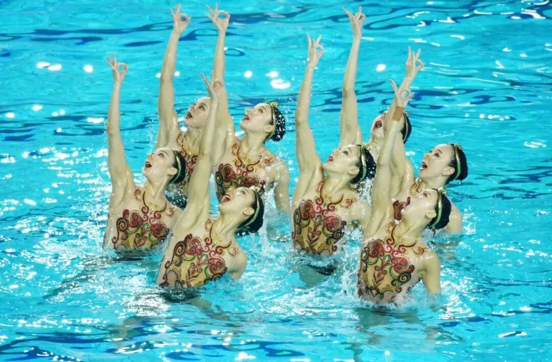 △十五运会花样游泳比赛在江门体育中心游泳馆举行 郭永乐摄