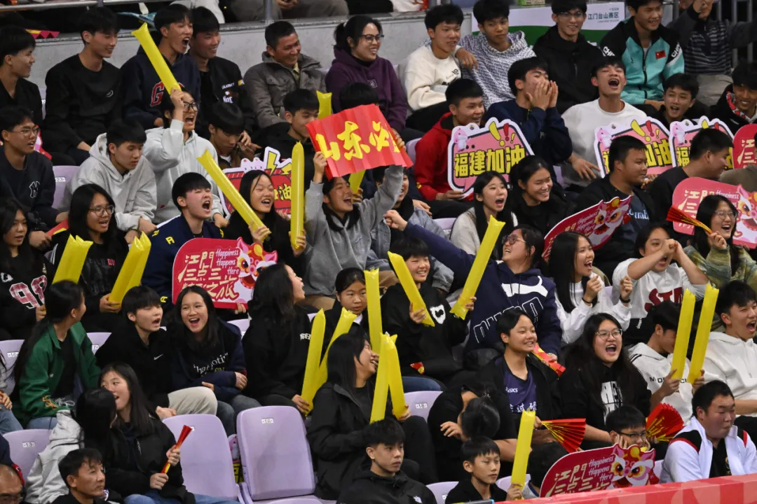 场上比拼精彩,场下氛围同样十分热烈。“山东加油!”“福建加油!”大量球迷到现场观赛,台山特有的“骨波(好球)”“倒晒(界外球)”等方言呐喊不断,形成了独特的观赛氛围。