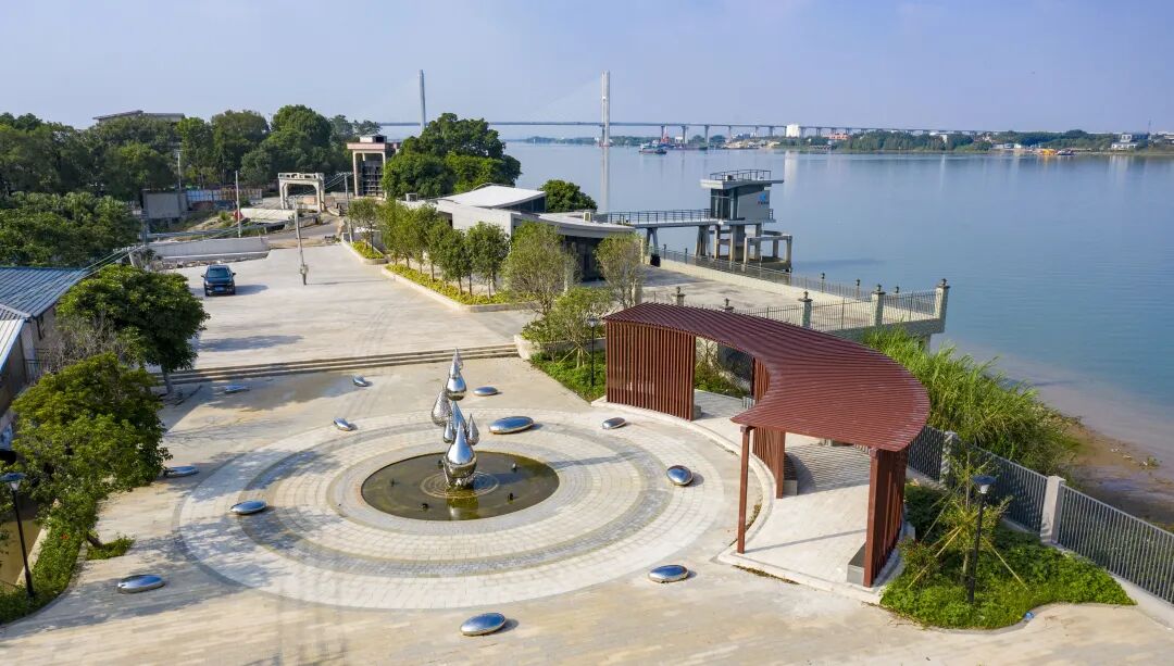 地处石板沙水道和磨刀门水道交汇处,大鳌岛最北端,地理位置独特,碧道工程在“鳌头”建设景观飘台、观景台、休闲漫步道及其他配套建筑物,以碧道元素融入沿江水生态环境,构建极具水乡特色的园区景观,沿江栈道可直达亲水平台。