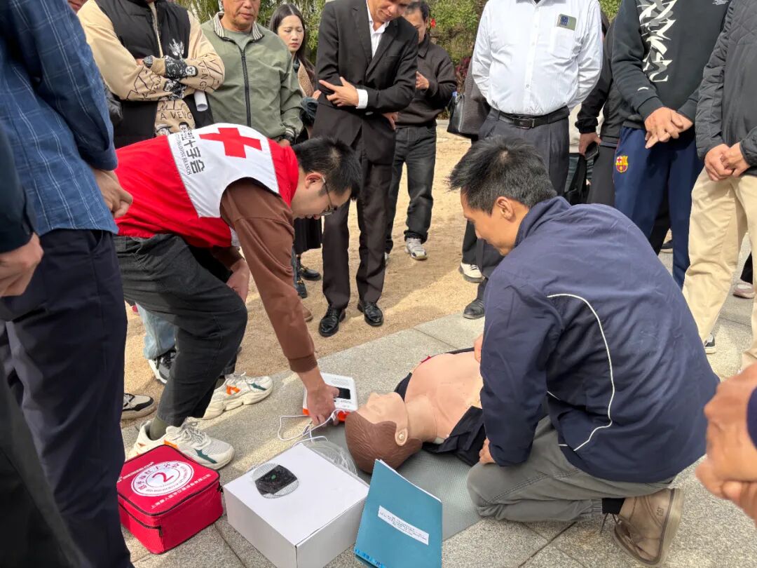 在下午实操培训和应急演练环节中,市文化广电旅游体育局紧密结合旅游行业实际特点,邀请恩平市红十字会对参会代表开展心肺复苏、AED体外除颤器的实操培训活动,并组织恩平山泉湾温泉酒店员工开展温泉池区突发疾病应急处置演练项目,让参会代表“沉浸式”体验,进一步加强了行业安全防范意识和应急处置能力。