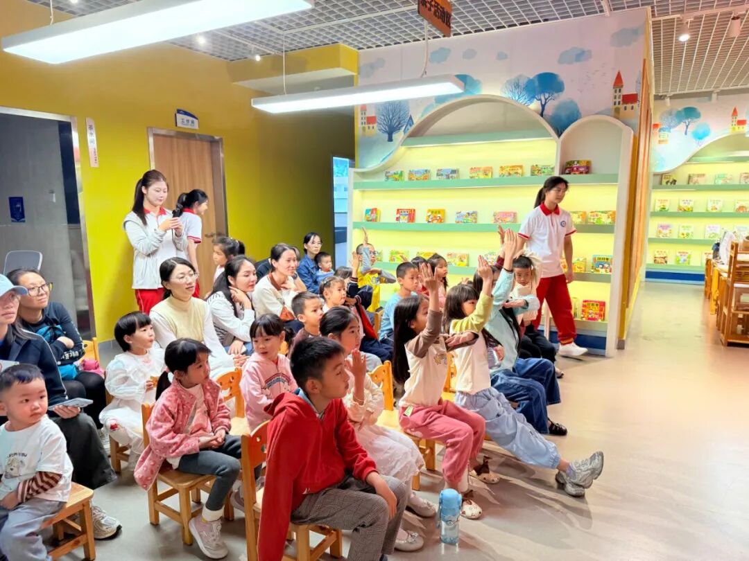 绘本里色彩鲜艳的画面、幽默的情节瞬间抓住孩子们的注意力:当讲到小动物们忍不住违背警告,喝了南瓜汤后身体变成橙色后悔不已时,孩子们时而瞪大好奇的眼睛,时而为小动物的“小失误”发出阵阵笑声;家长们则借着故事细节,轻声与孩子交流 “你看,不遵守规则会有这样的后果哦”,让规则意识在亲子互动中悄悄萌芽。