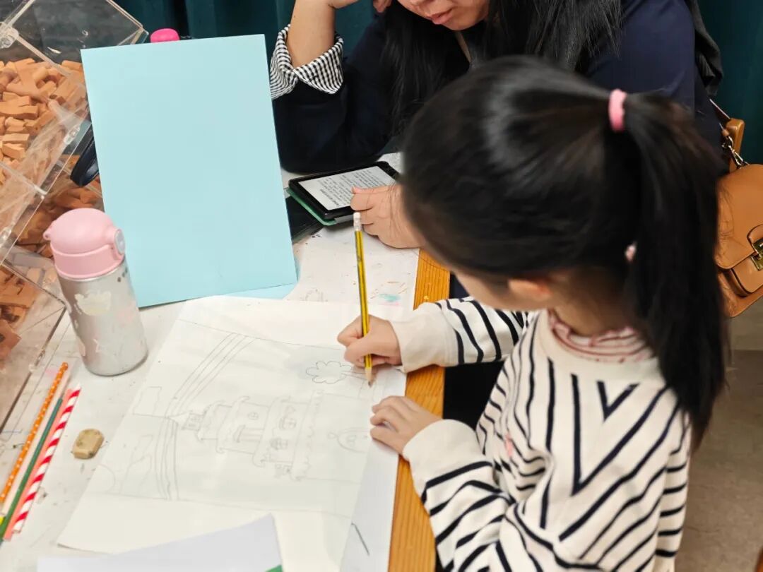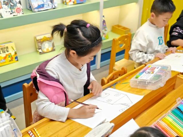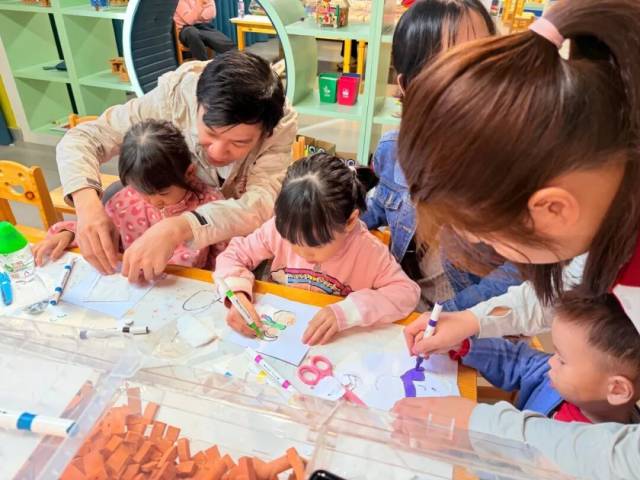 故事的余韵还未散去,创意的翅膀已然展开。在最后的亲子绘画环节,孩子们化身小小设计师,与爸爸妈妈共同执笔,描绘“我心中的大房子”。