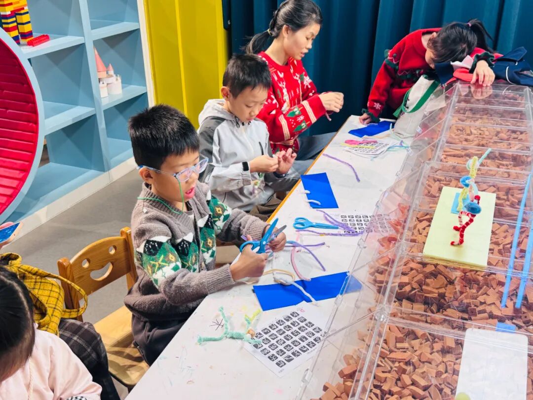 活动的压轴环节是手工制作“冬日里的小雪人”。每个家庭分到了彩笔、卡纸、石英砂、双面胶等材料。在志愿者老师的指导下,家长和孩子们通力合作:先用卡纸剪出雪人的轮廓,再用石英砂混合胶水营造出积雪的质感,最后用彩笔描绘出雪人的表情和装饰。有的雪人系着围巾,有的戴着礼帽,还有的“牵”着一个小伙伴……每个作品都独一无二,凝聚着亲子间的创意与默契。看着自己亲手制作的、憨态可掬的小雪人,孩子们的脸上洋溢着自豪与喜悦。
