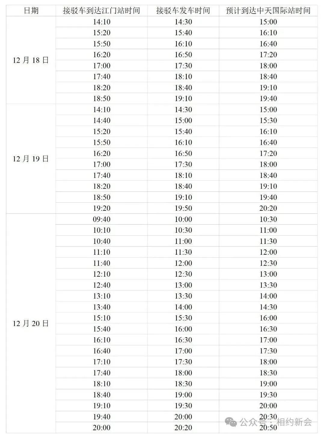 比赛日(12月21日)赛后接驳