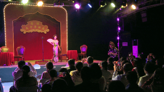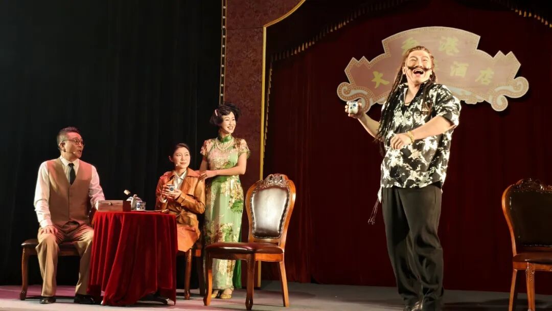 还没走进剧场,经过骑楼、老屋、巷道,你仿佛穿越时光隧道,走进四十年代的街区。踏进大院:你可见到热情的商贩、善良的卖花女、质朴的车夫……哦,还有过来跟你接头的特工,记得对上暗号,否则就拿不到船票了!靓女们当然要注意提防,角落里,竟然有……不剧透!走入1942的香港大中华酒店,在酒吧随着找个座位坐下,昏暗的灯光、老式留声机流淌出的《夜来香》、空气中若有似无的白玉兰花香气息……舞台边界被刻意模糊,特务从你身边匆匆走过,子弹上膛的声响,伴随“砰”的一声,那硝烟的气味,就在你的身边弥漫。
