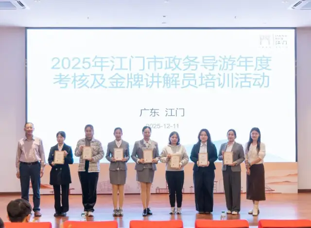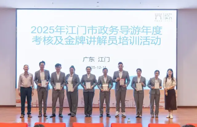 政务导游和金牌讲解员是展示江门城市形象、传播侨乡文化的重要窗口和亮丽名片。本次培训考核不仅是一次业务技能的检阅,更是一次思想认识的升华。接下来,这支经过淬炼的政务导游与金牌讲解员队伍,将以更专业的讲解、更优质的服务、更饱满的热情,活跃在江门文旅推广的第一线,生动讲述江门的历史故事、改革故事、发展故事,让每一位到访江门的宾客都能深刻感受到这片热土的独特魅力与文化底蕴,擦亮江门三点三精彩之旅城市品牌。