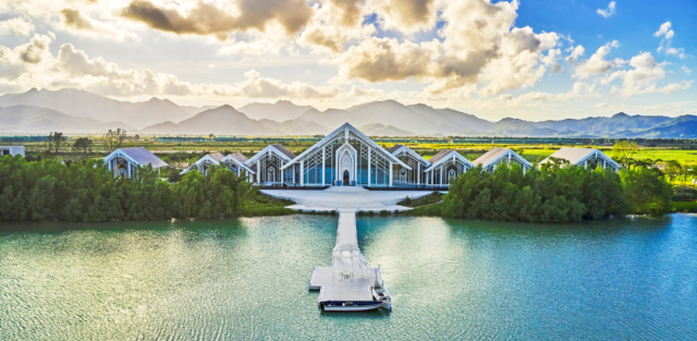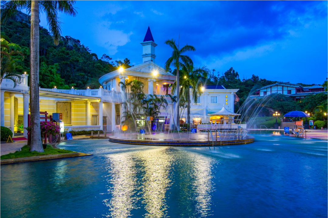 度假区内设有唐式、欧式、日式三大温泉区,提供不同的舒适体验;此外还设有水上乐园和无边际泳池等丰富的游乐设施,如大象滑梯、水上冲关池和梦幻泡沫池等,非常适合夏季玩乐。古兜山下、滨临黄茅海畔,温泉在山林间氤氲而起,在自然环抱中让人身心彻底放松。泡汤养生、远眺海天一色,是夏日放松身心的绝佳选择。