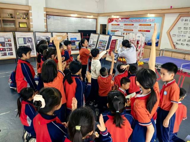 动静结合的体验课堂,成为点燃全场的环节。在互动环节中,一只只手臂齐刷刷地举起,答案声中混合着自信与急切。成功解答并获得特色文创奖励的同学,笑容格外灿烂。知识在问答间流转,文化在互动中扎根,遥远的侨乡故事以一种可感、可触、可答的方式,走进了孩子们的认知世界。